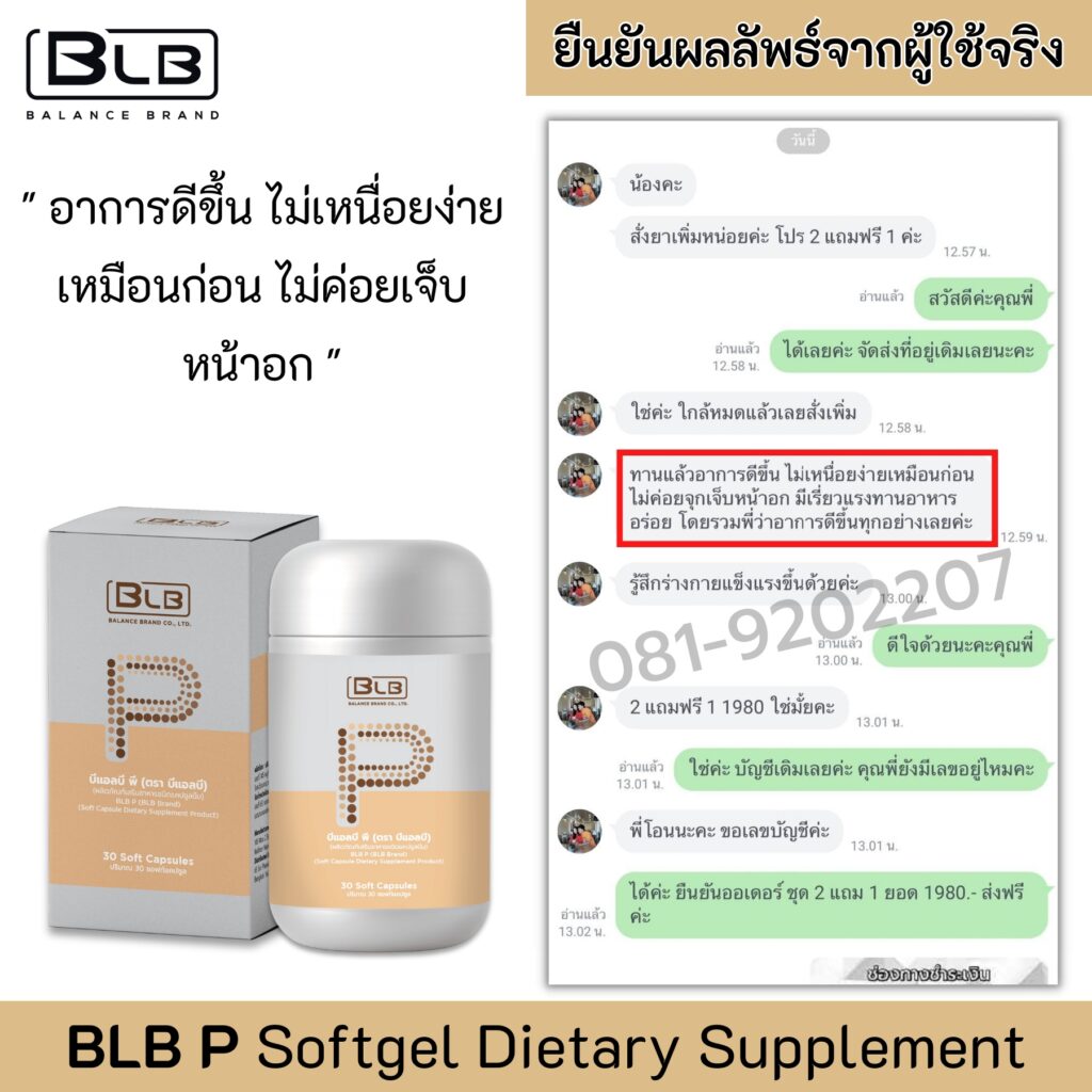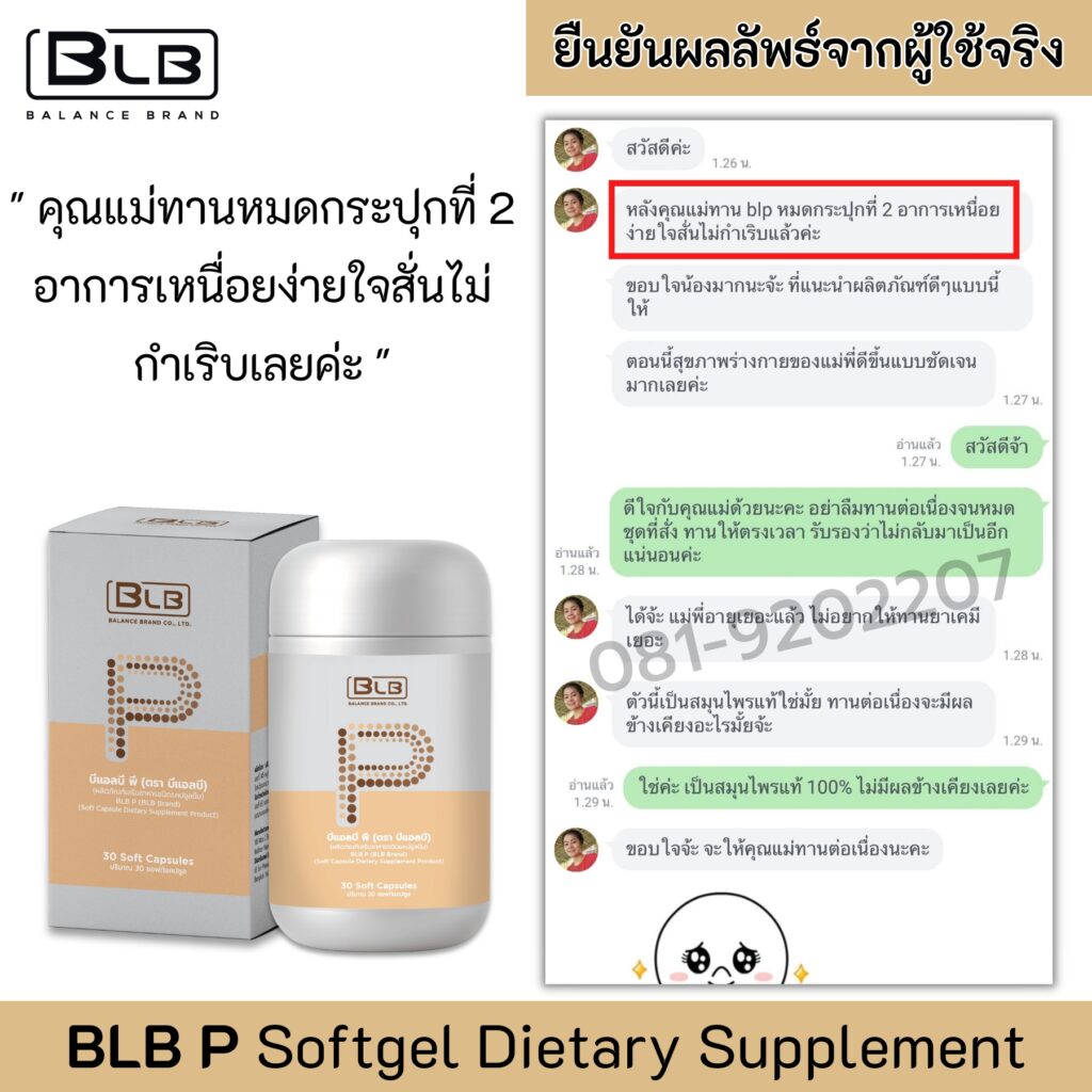 ตอนแรกแจงไม่เชื่อเลย เพราะกินยามาตลอด จี้ไฟฟ้ามาแล้วก็ยังไม่หาย เลยลองหาข้อมูลในเน็ต เจอว่า BLP เป็นสมุนไพรสกัดเย็น 9 ชนิด ที่ช่วยฟื้นฟูหัวใจเต้นผิดจังหวะที่ต้นเหตุ มี อย.รับรอง และที่สำคัญมีรีวิวผู้ใช้จริงเยอะมากที่มีอาการเหมือนแจง ทานตัวนี้จนหาย เลยตัดสินใจลองสั่งมากินดู เพราะไม่มีอะไรจะเสียแล้ว