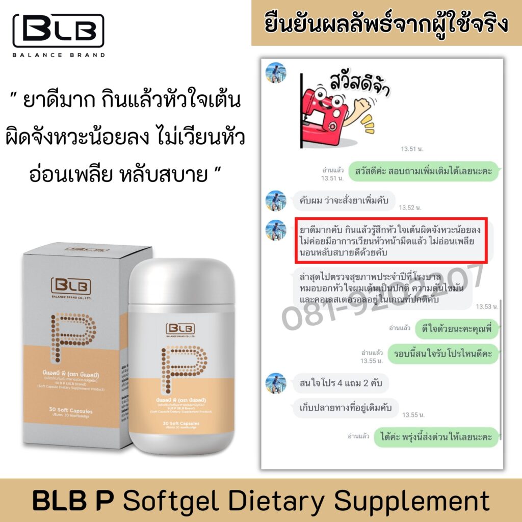 อย่ารอช้า!! คลิกปุ่มด้านล่างแล้วแอดไลน์เพื่อสั่งซื้อ BLB P ของแท้ ที่ช่วยยับยั้งความทรมานจาก “หัวใจเต้นผิดจังหวะ” เพื่อให้คุณใช้ชีวิตอย่างมีความสุขในทุกๆ วัน รับส่วนลดพิเศษและของแถม ตอนนี้!!