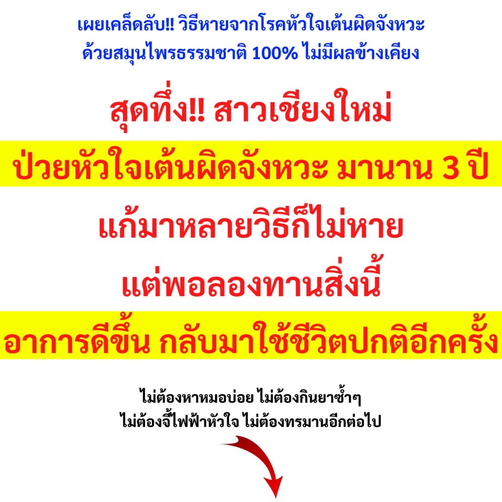สวัสดีค่ะ ชื่อแจงนะคะ อายุ 34 ปี อยู่จังหวัดเชียงใหม่ เคยป่วยเป็นหัวใจเต้นผิดจังหวะมานาน 3 ปี แต่ปัจจุบันไม่มีอาการแล้วค่ะ วันนี้อยากมาแชร์ประสบการณ์ส่วนตัว เผื่อจะเป็นประโยชน์กับใครที่กำลังเป็นหัวใจเต้นผิดจังหวะเหมือนแจง